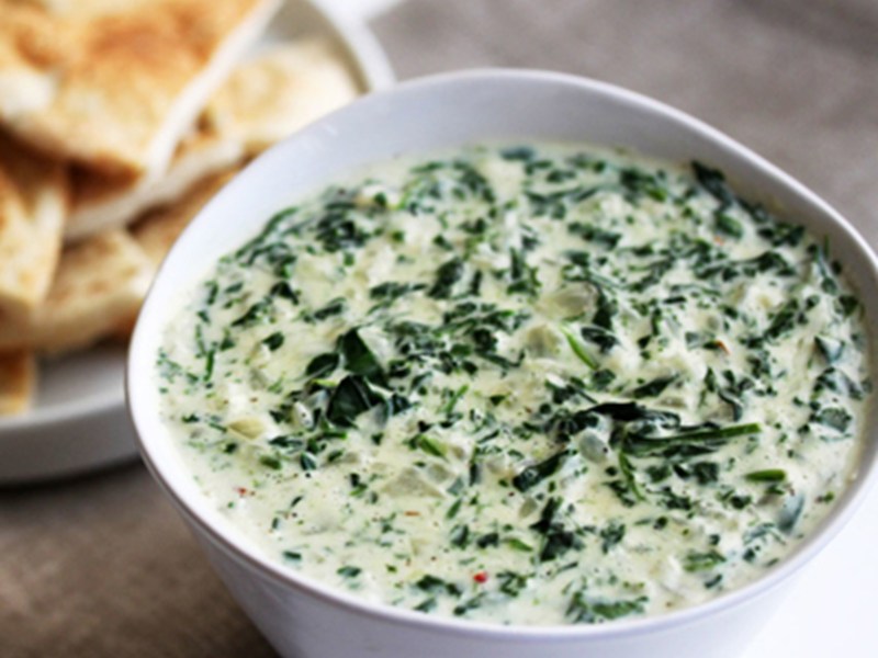 Add cream cheese, cottage cheese, yogurt, lemon juice, salt and pepper into a blender and pulse until just combined. Add spinach and chives and pulse until all combined. Serve